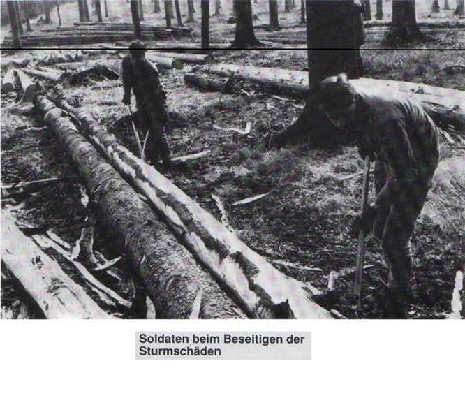 Soldaten des Bataillons beseitigen Sturmschäden im Hessischen Forst.